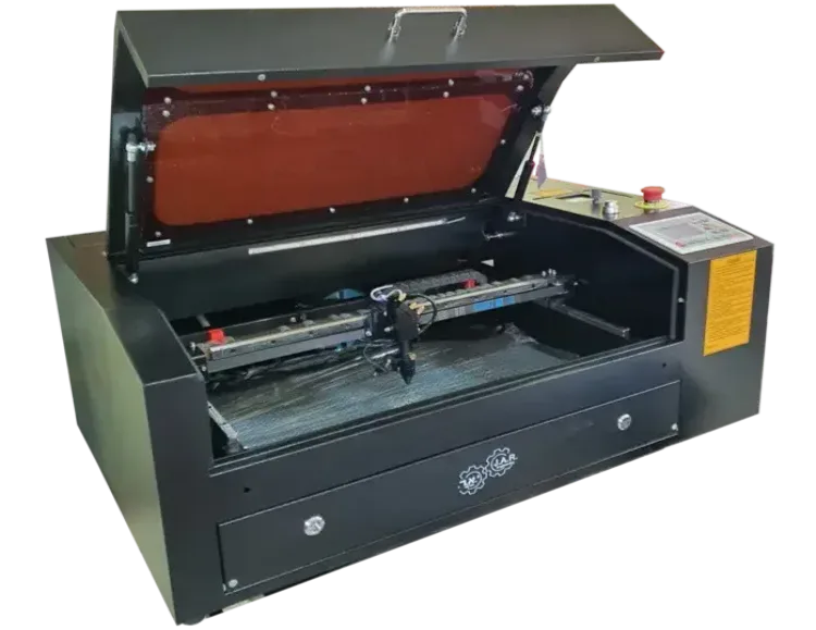 מכונת לייזר לחיתוך וחריטה במגוון רחב של חומרים — עץ, פלסטיק, פרספקס, גומי לייצור חותמות, מוצרי פרסום, שלטים ועוד אינספור יישומים.