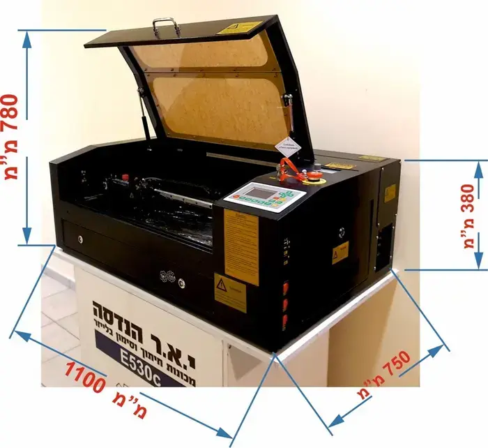 מכונת לייזר לחיתוך וחריטה במגוון רחב של חומרים — עץ, פלסטיק, פרספקס, גומי לייצור חותמות, מוצרי פרסום, שלטים ועוד אינספור יישומים.