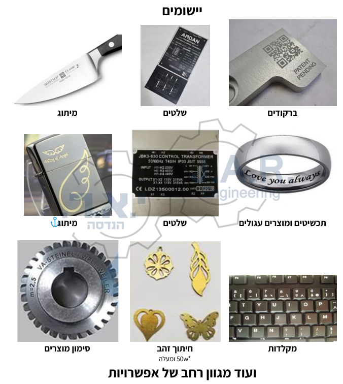 - סימון על מגוון רחב של חומרים – מתכות, פלסטיקים, סגסוגות ועוד..