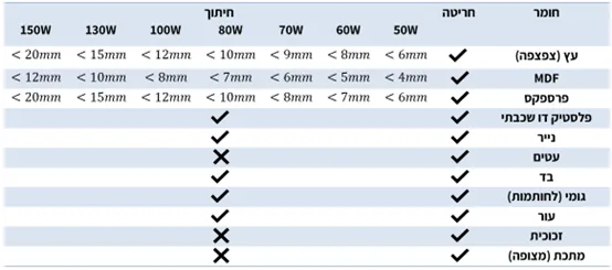 | מהירות חיתוך מקס' | 1–400 מ"מ לשנייה |